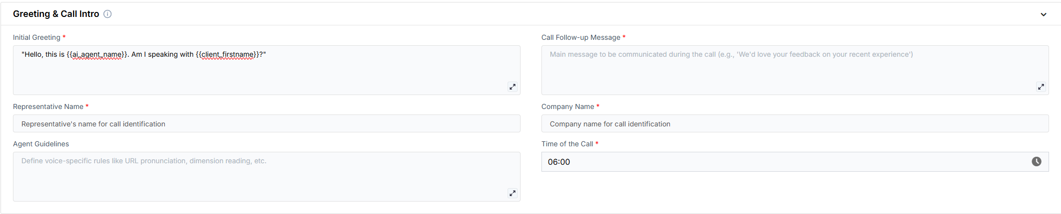 - Agent Guidelines – Brief guardrails on tone/behavior (concise rules only).